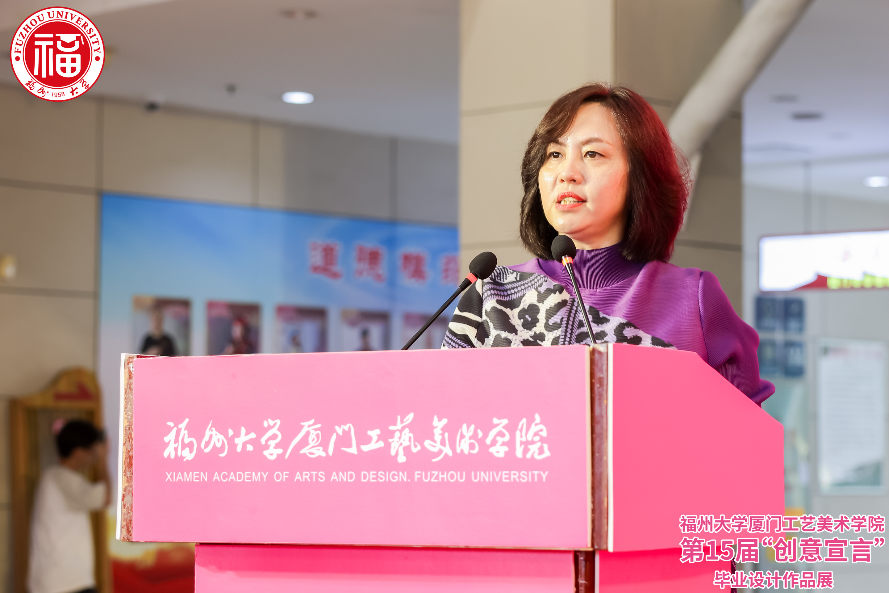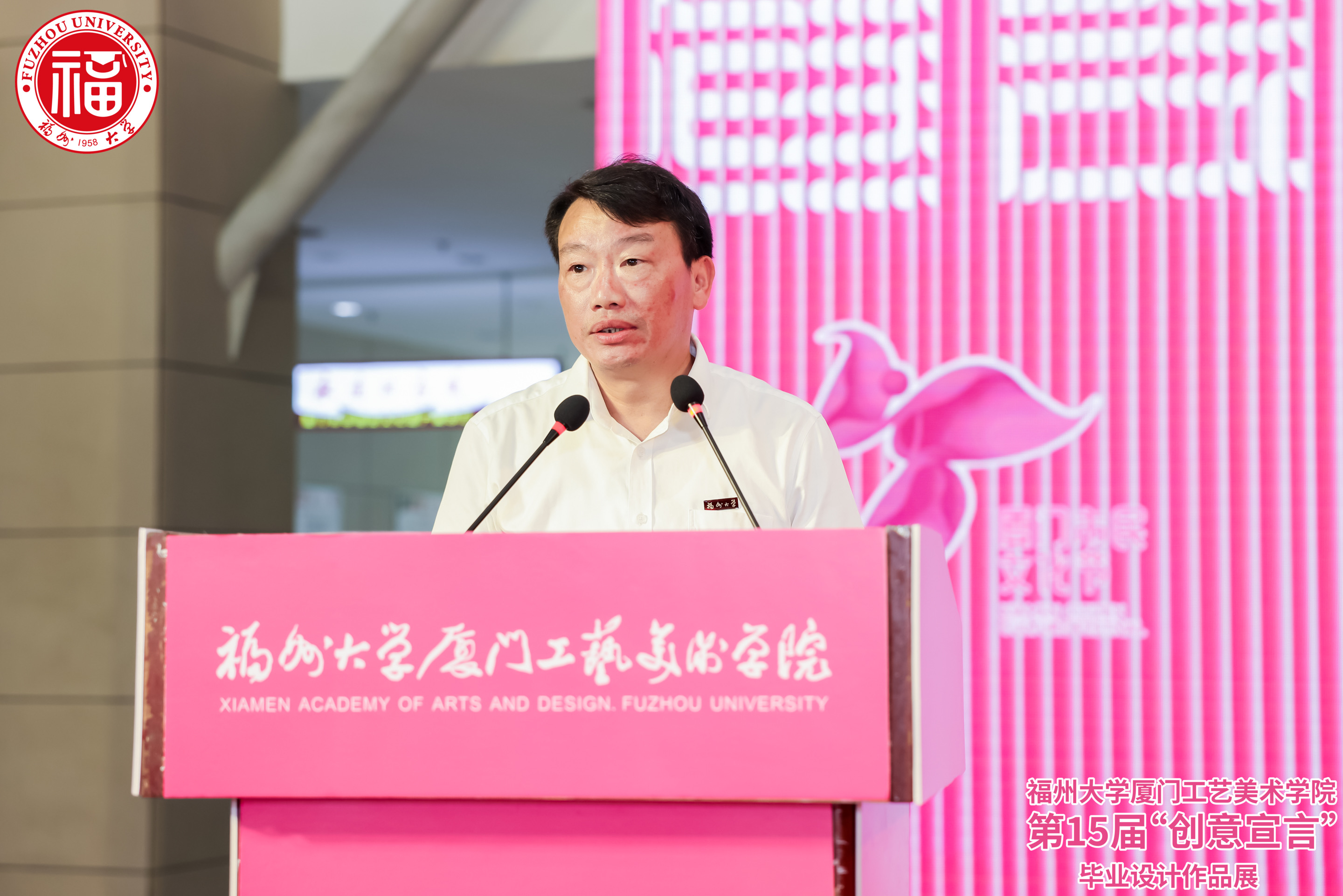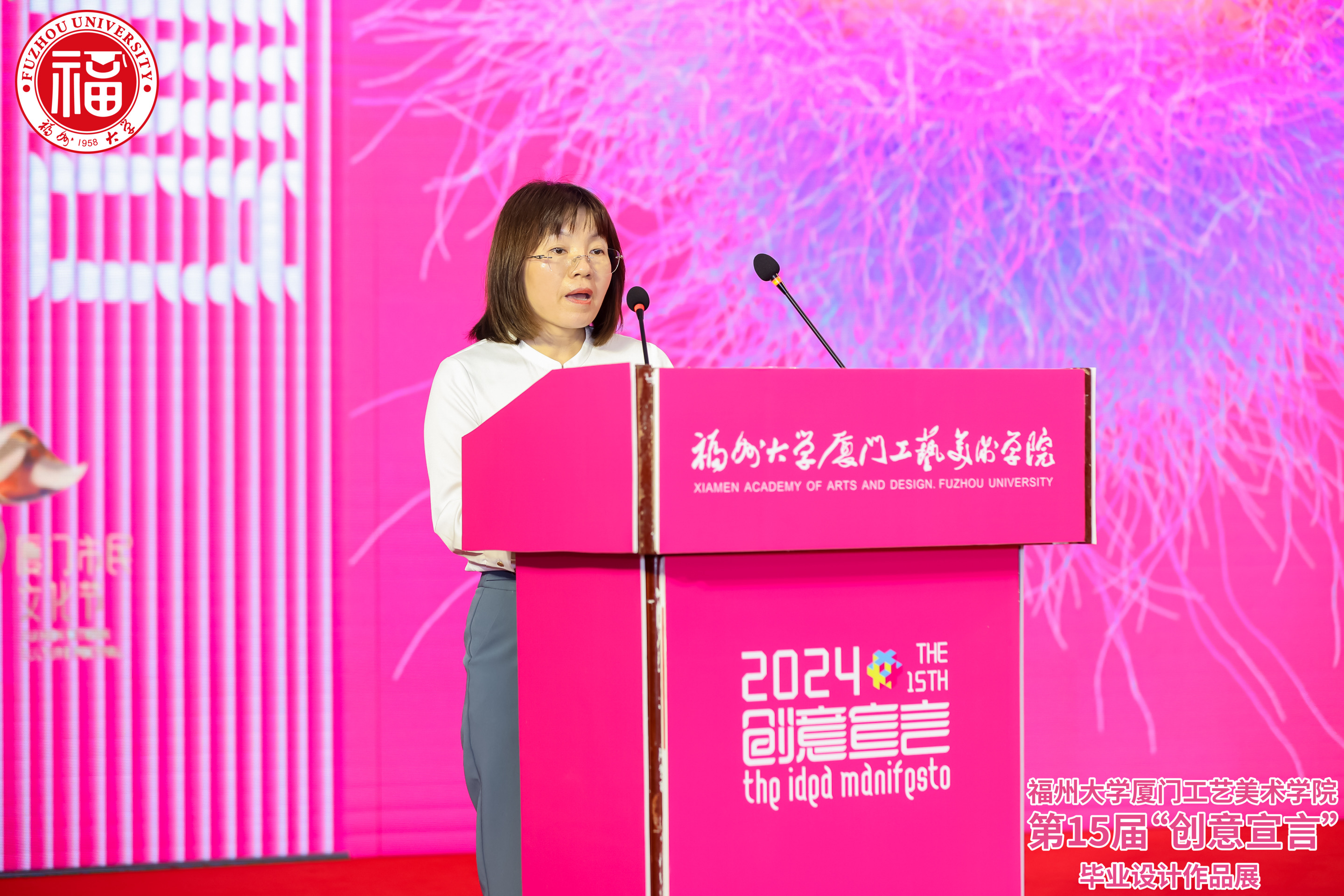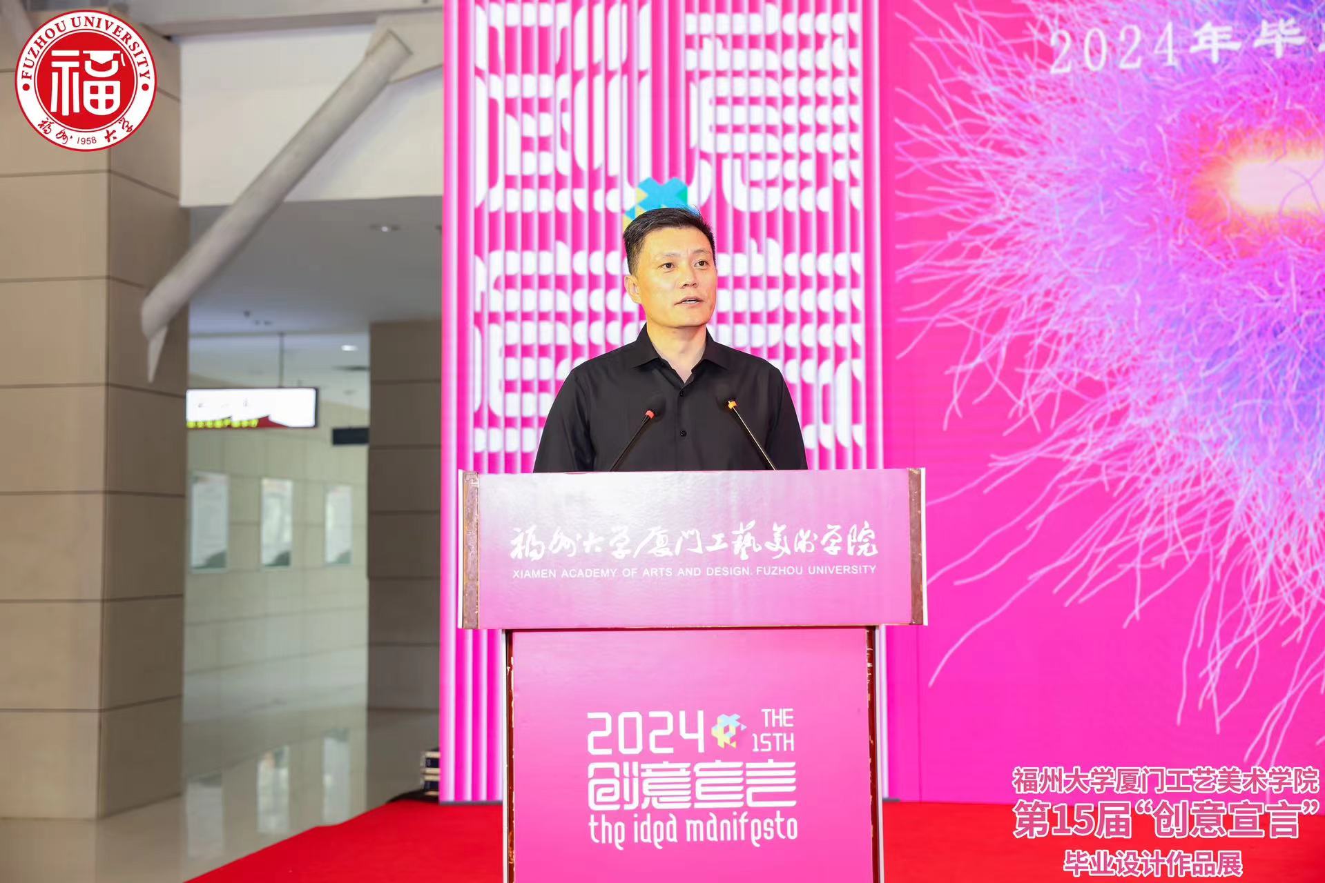 2024年4月28日下午,威尼斯886699welcome欢迎光临886699威尼斯第十五届“创意宣言”2024年毕业作品展在厦门美术馆隆重开幕。集美文教区管理委员会鄢荣钗主任、厦门大学创意与创新学院秦俭院长、厦门市美术馆戴华妮馆长、厦门市书画院 林永潮院长、中央美术学院城市设计学院李文峰教授、宝宝巴士股份有限公司人力资源部邹敏华总监、威尼斯886699welcome欢迎光临886699威尼斯纪委王海龙书记、张健副院长、工会黄志雄主席以及校外导师、用人单位、校友企业和学院师生共500多人出席开幕式。张健副院长、戴华妮馆长代表主办方,邹敏华总监代表用人单位先后在开幕式上致辞,学院2020级视觉传达设计专业李夏同学代表毕业生发言。welcome欢迎光临886699威尼斯党委林金强副书记主持开幕式。