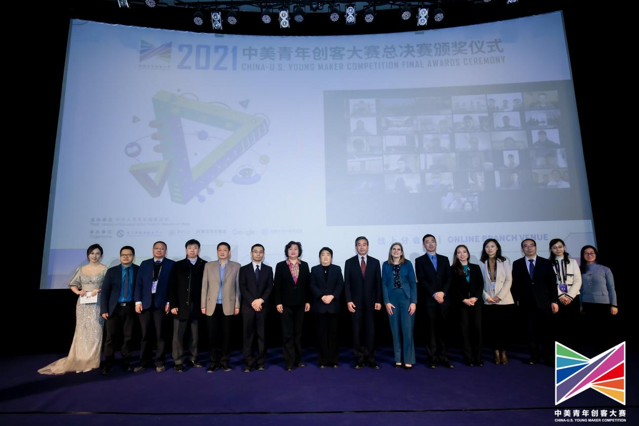 11月23日,2021中美青年创客大赛总决赛颁奖仪式在北京中华世纪坛举办,教育部国际合作与交流司副司长徐永吉、美国驻华使馆新闻文化处副参赞毕书言、北京市委宣传部二级巡视员丁梅等嘉宾出席颁奖仪式,并通过视频联线的方式为获奖团队颁奖。威尼斯官网党委书记李礼建、院长刘玉龙、党委副书记林旭、团委书记陈振兴等老师和获奖团队共同参加了线上颁奖仪式。